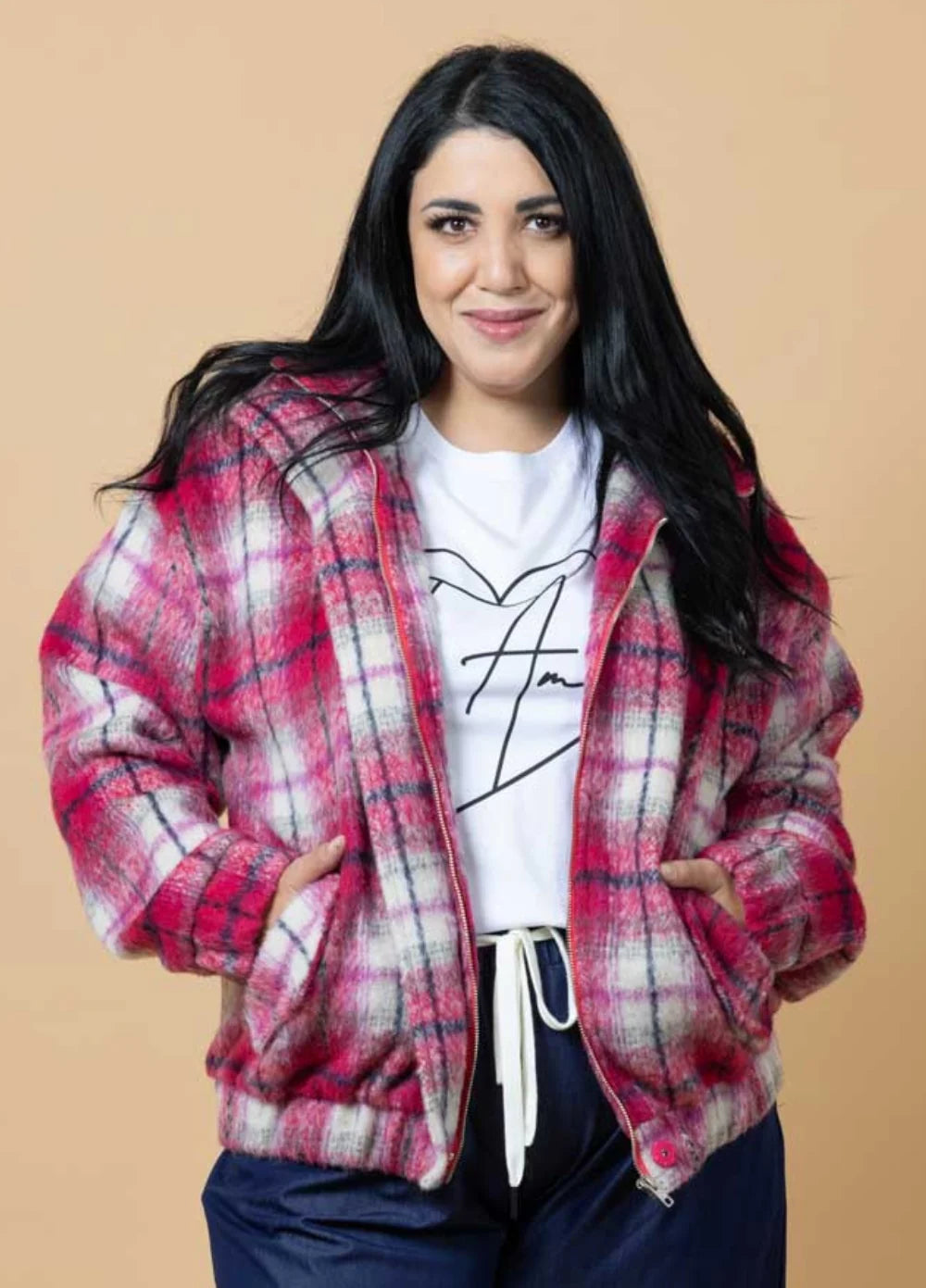 Saskia Bomber Jacket - Pink Tartan - CHARLO