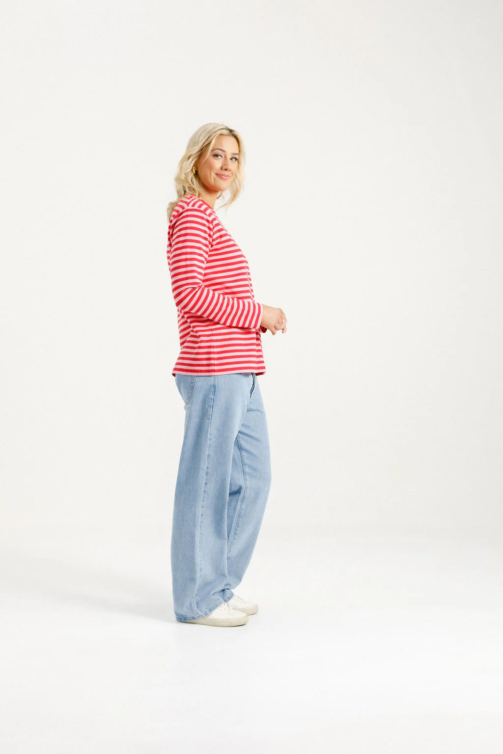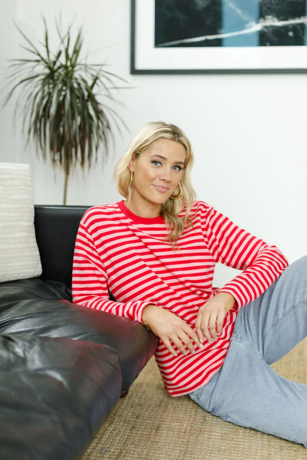 A timeless tee shirt design, the Long Sleeve Chris Tee is your go-to for effortless style and comfort. Crafted in a fun pop of colour, this tee in Berry Stripes features a classic design and long sleeves, perfect for layering or wearing solo.